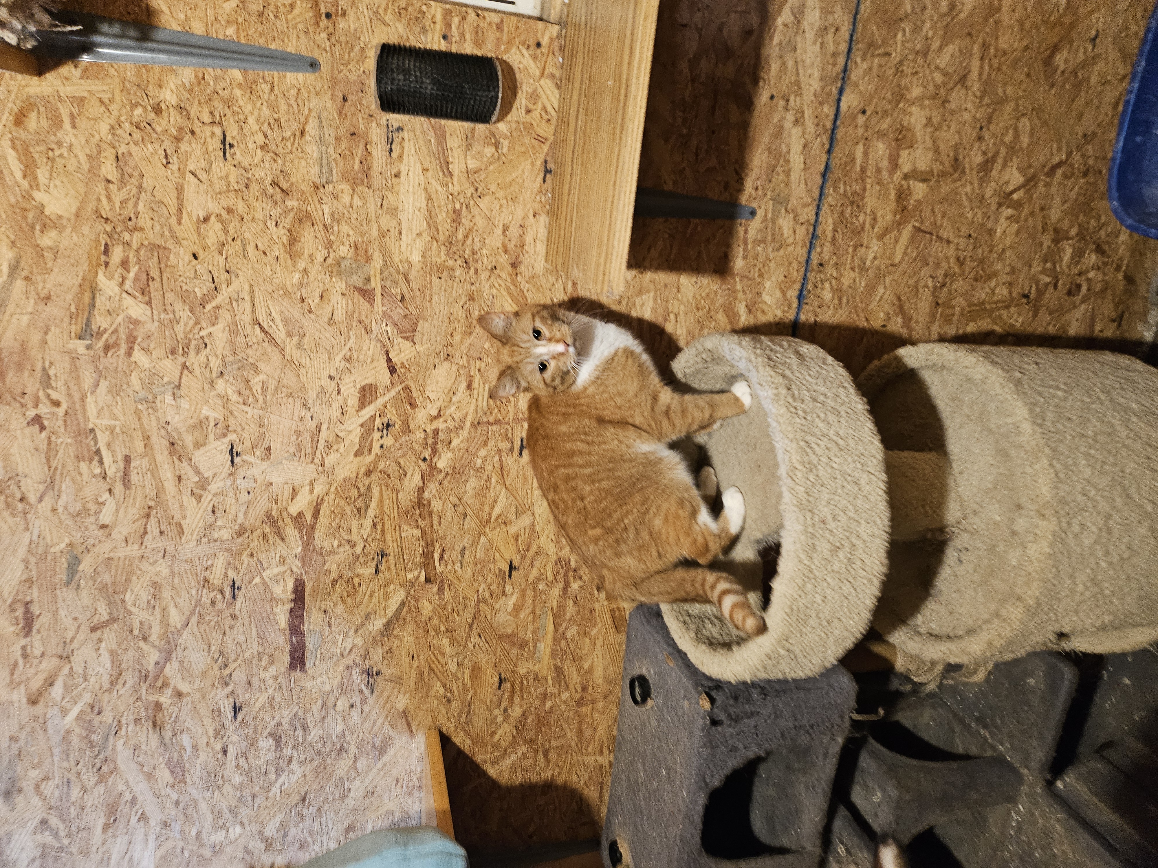 Jerry is currently housed in a custom built cat shed alongside his sibilings (Jellybean, Pasta, & Noodle) and June.