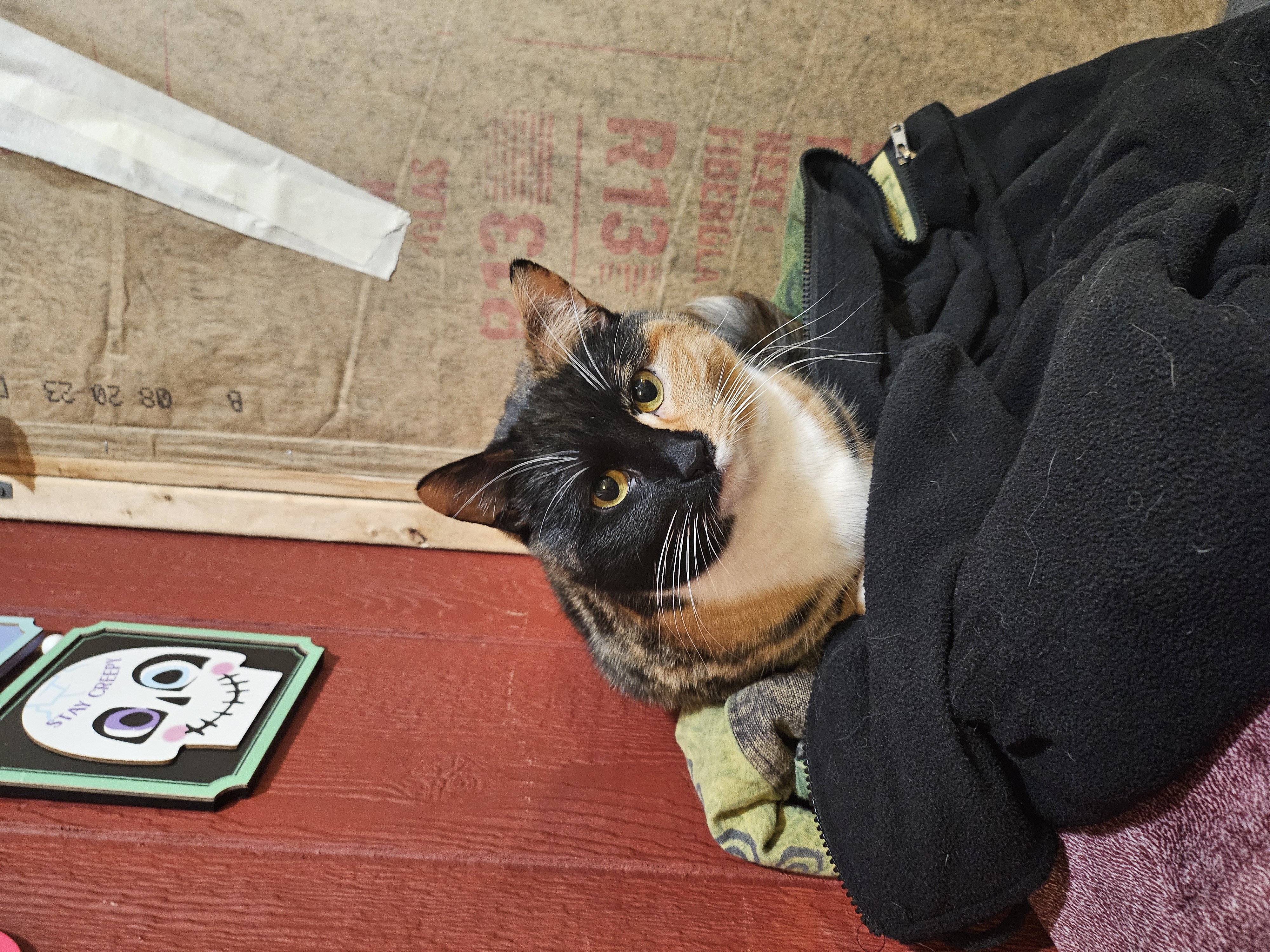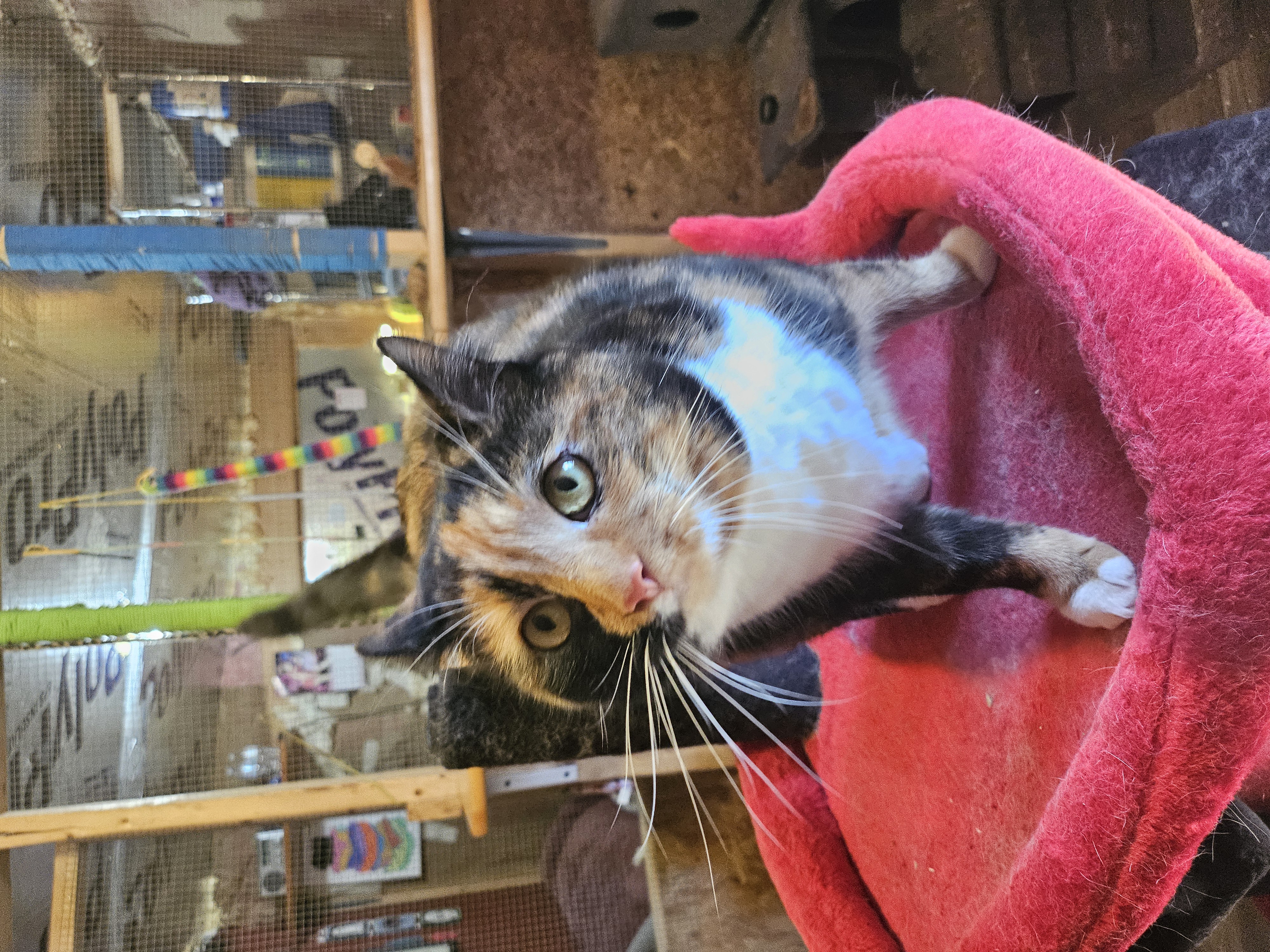 Pasta lives in a custom-built cat shed alongside her sibilings (Jellybean, Jerry, & Noodle) and June.